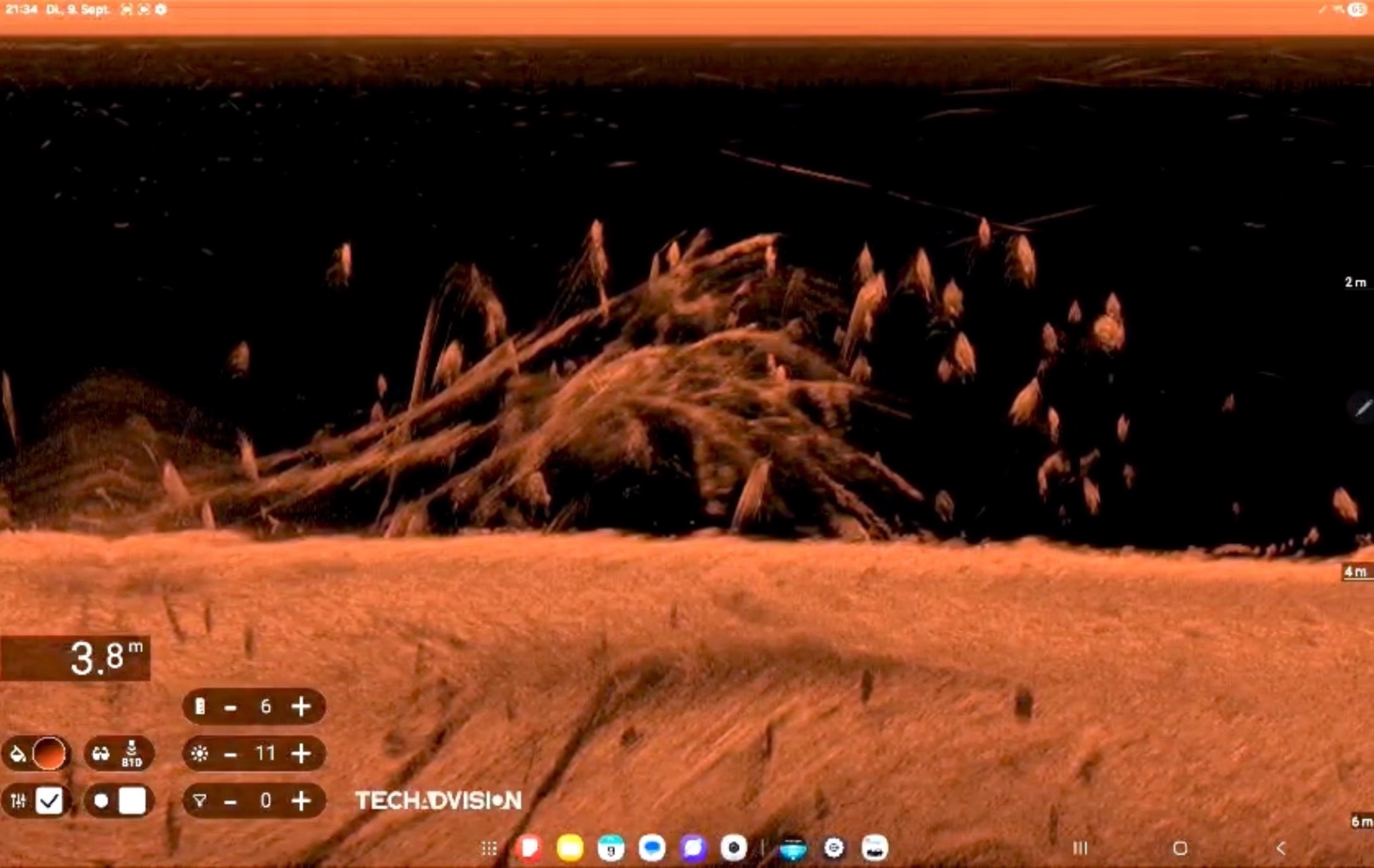 Du kannst direkt im Echolotbild Punkte/Targets markieren und diese in CPP weiterverwenden. Außerdem wird die aktuelle Tiefe laufend an CPP übertragen, sodass CPP die Tiefenwerte fürs Mapping / die Tiefenkarte nutzen kann.