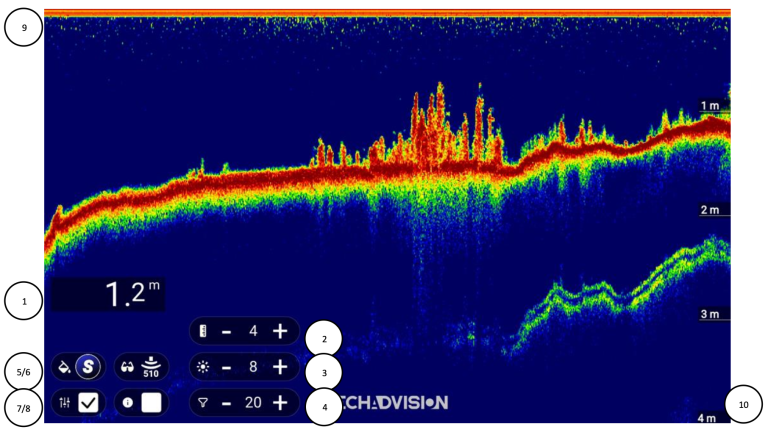 - Präzise 2D-Bilddarstellung für zuverlässige Boden- und Fischanzeige.